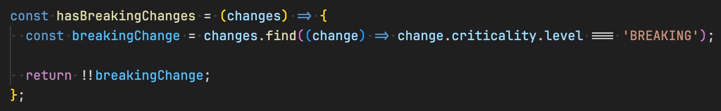 I added a helper function, hasBreakingChanges(), to detect any changes labeled "BREAKING" by the Inspector. I run this test before I begin any deployments and it has saved my bacon on numerous occasions.