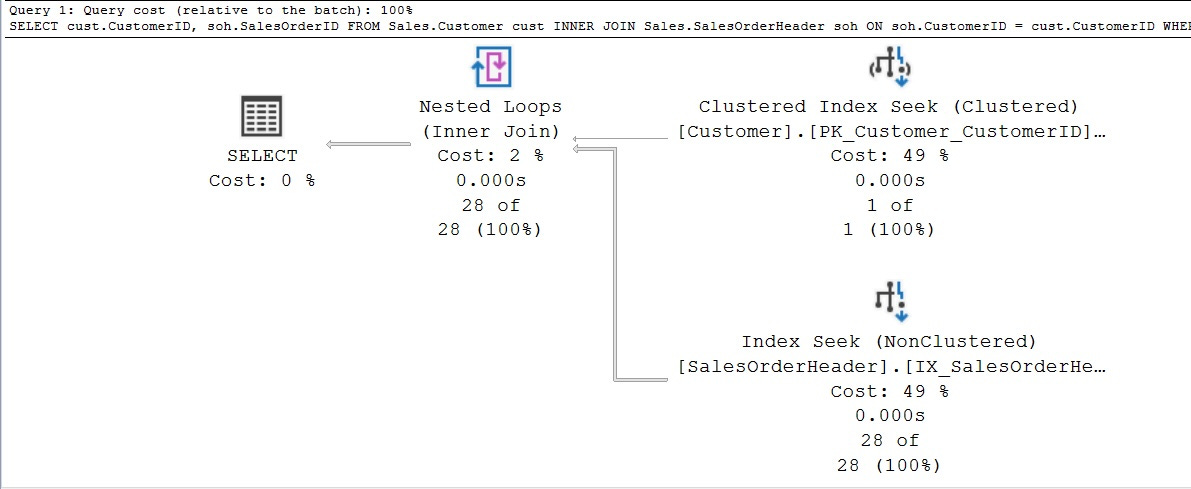 is the primary key in the Customer table, making this a best-case scenario. Let's look at the query plan for this: